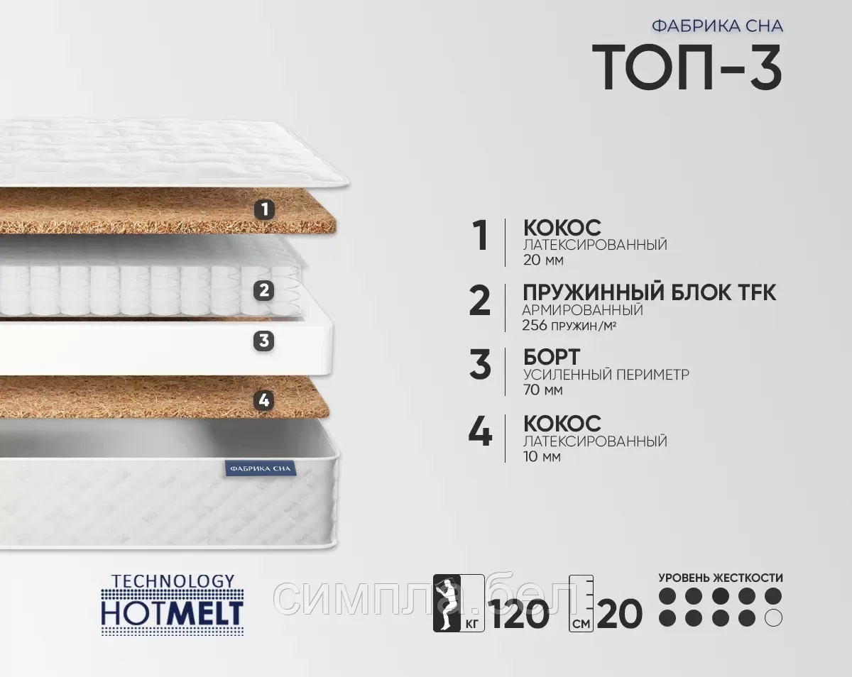 - усиленный борт из плотного пенополиуретана сохранит форму матраса на долгие годы;